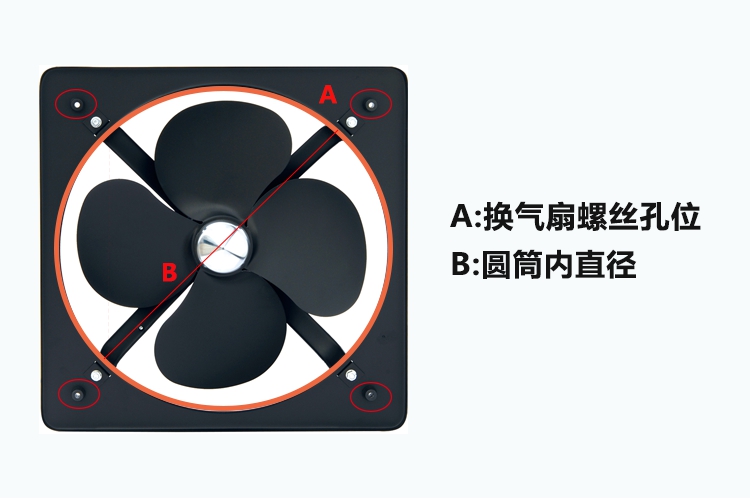 圓形孔位安裝考慮方排的圓形內(nèi)徑大小,如:孔位為直徑300m的圓形孔位,只需選擇內(nèi)圓框直徑為300mm的換氣扇產(chǎn)品即四周再用螺絲鎖住即可。